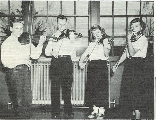 Ray Abrahamson, LeRoy Lundy, Paul Shockley, Elsie Baker, Miss Brunner-Instructor.